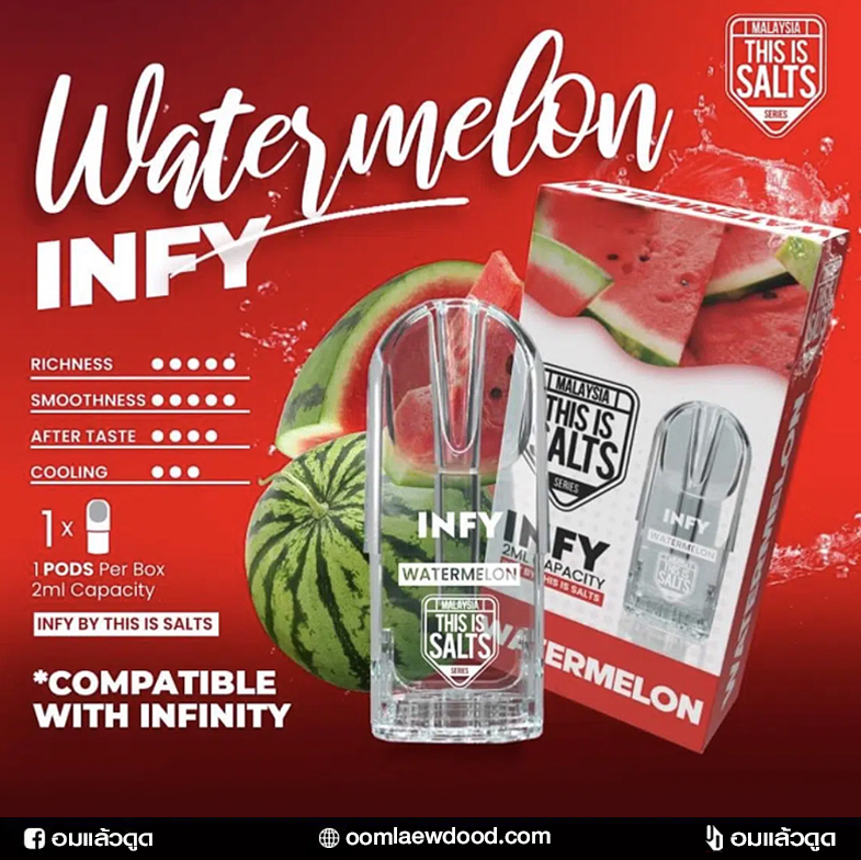 Infy by This is Salt นั้นสามารถที่จะสามารถที่จะใช้งานกับ Pod ของบุหรี่ไฟฟ้าตัวเองในชื่อ This is Salts INFY ซึ่งเป็นหนึ่งใน Pod ที่ปัจจุบันนั้นได้รับความนิยมอย่างมาก และยังหาซื้อได้ง่ายอีกด้วย โดยทั้ง 10 กลิ่นของหัวน้ำยา INFY นั้นสามารถใช้กับ Pod ได้ทั้งหมดได้ด้วยเช่นกัน